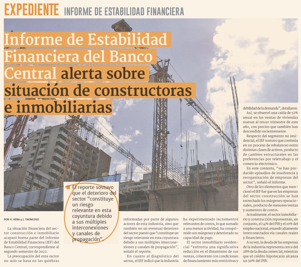 BC advierte preocupación por deterioro financiero de sectores inmobiliario y de la construcción - (El Mercurio de Santiago)