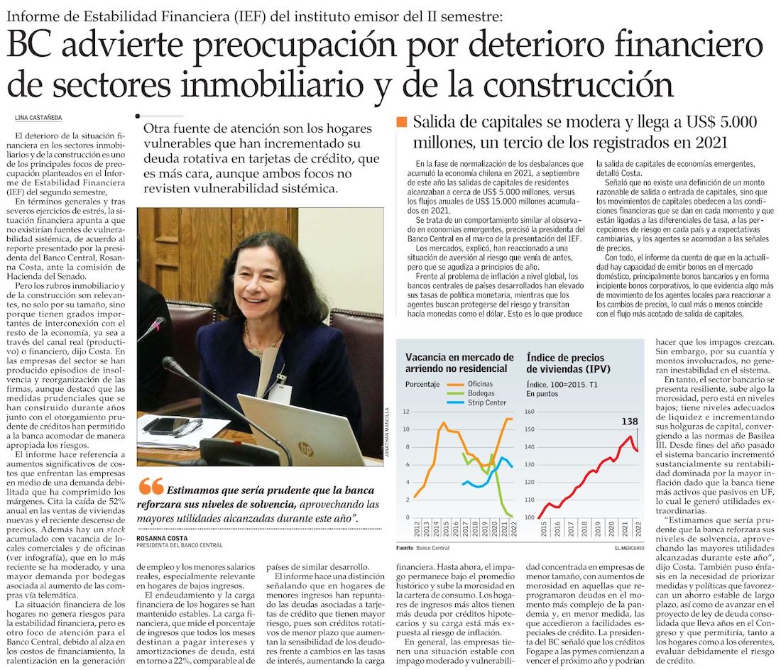 Informe de Estabilidad Financiera del Banco Central alerta situación de constructoras e inmobiliarias - (Diario Financiero)