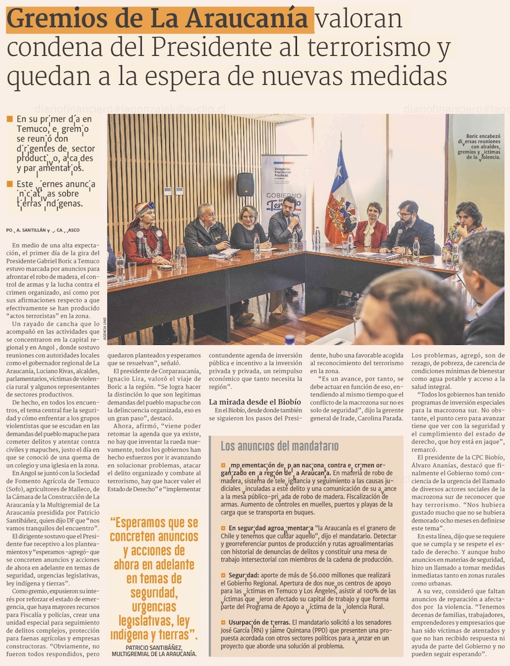 Boric reconoce actos terroristas en La Araucanía, pero critica ley para perseguir esos delitos - (El Mercurio de Santiago)