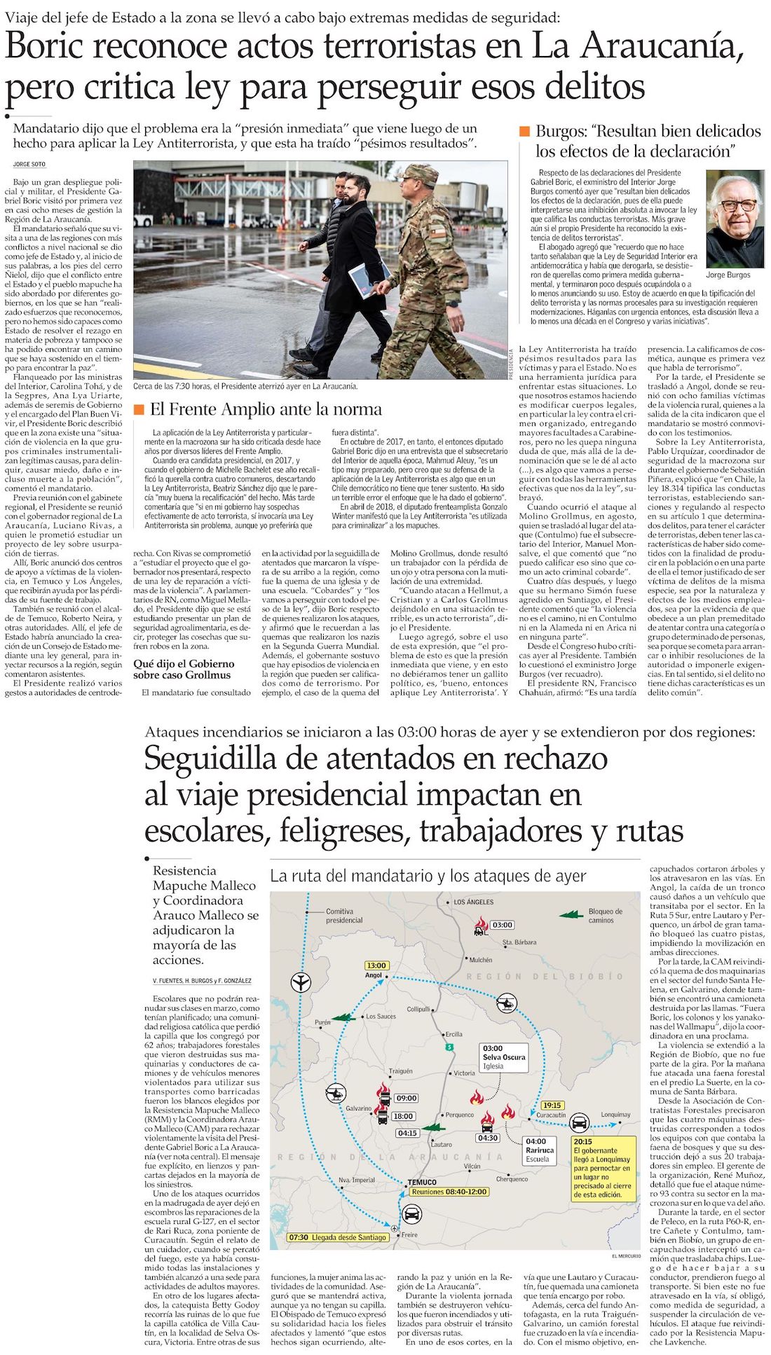 Gremios de La Araucanía valoran condena del Presidente al terrorismo y quedan a la espera de nuevas medidas - (Diario Financiero)