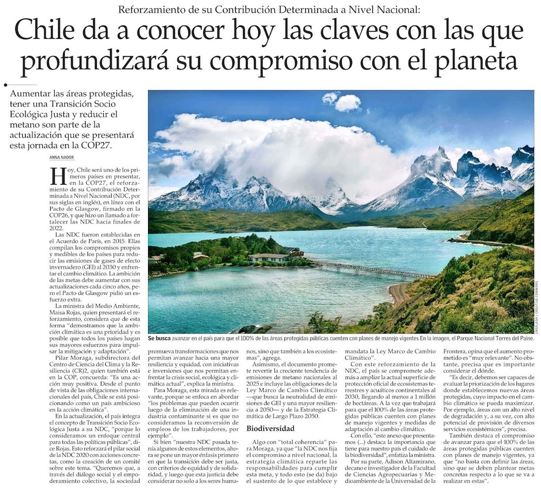 COP27: Trabajar en beneficio de las personas y el planeta - (La Tercera)