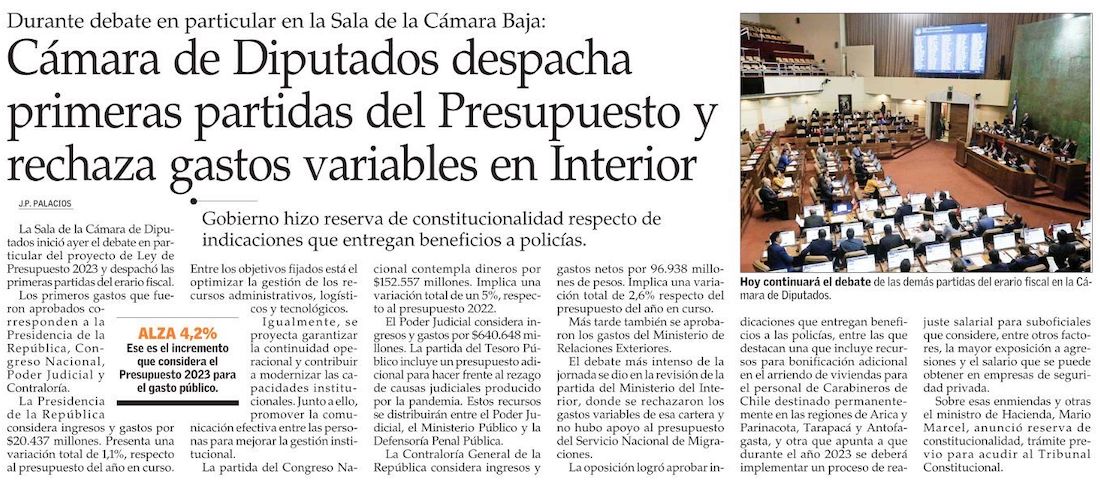 Sube tono del debate de Presupuesto 2023 en la Cámara y Marcel anuncia que irán al TC por algunas normas - (Diario Financiero)