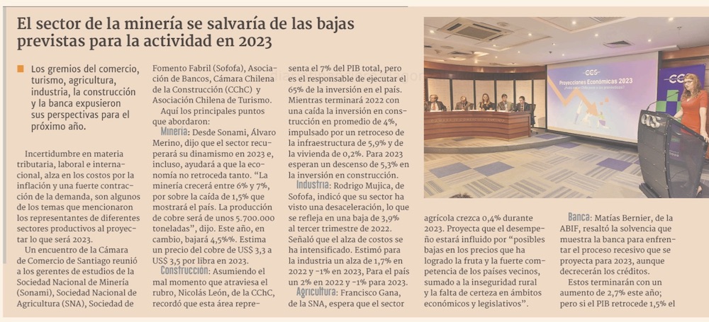 En medio de recesión e incertidumbre, la minería es el único sector que crecería en 2023 - (El Mercurio de Santiago)