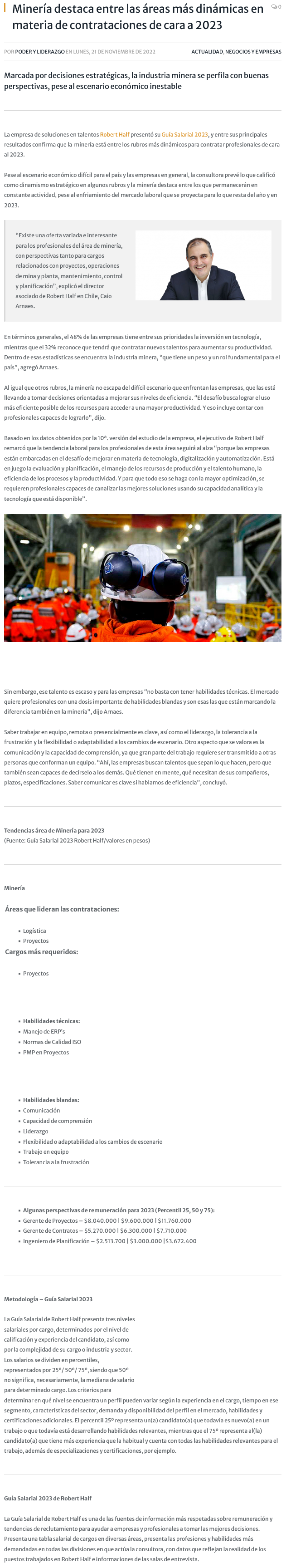 Minería destaca entre las áreas más dinámicas en materia de contrataciones para 2023 - (americaeconomia online)