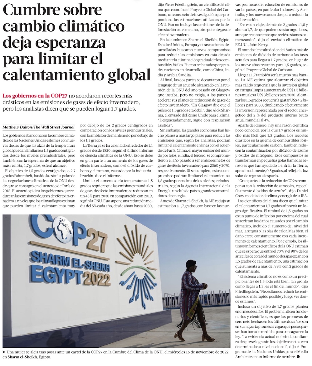La Cumbre del Clima COP27 bajo la lupa de los expertos: poca ambición y avances acotados - (Diario Financiero)