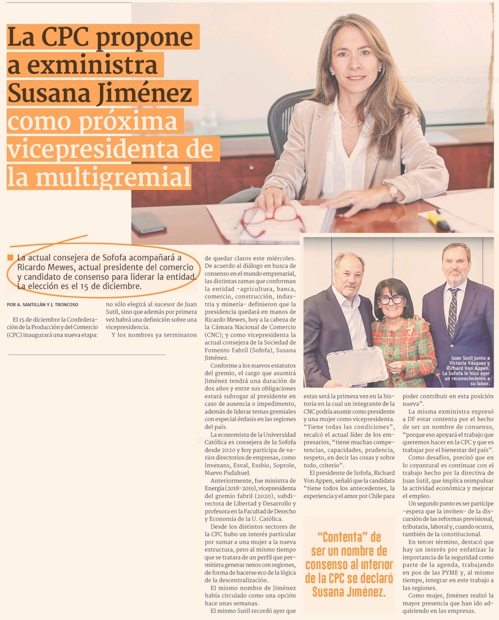 Susana Jiménez, directora de empresas y exministra de Energía, asumirá vicepresidencia de la CPC - (Pulso)