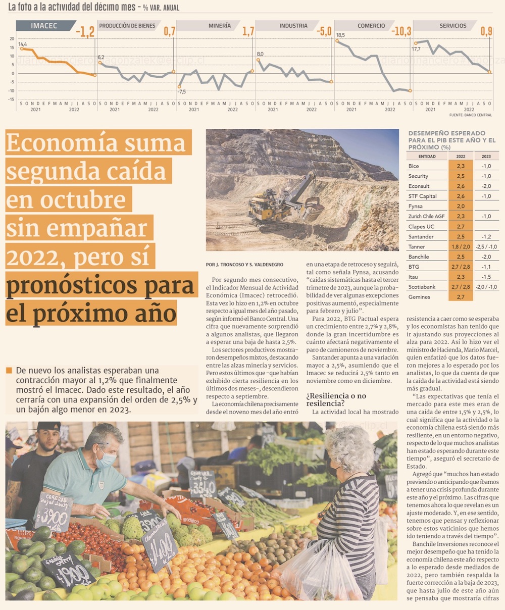 Actividad cae por segundo mes consecutivo en anticipo de negativo escenario para IV trimestre - (El Mercurio de Santiago)