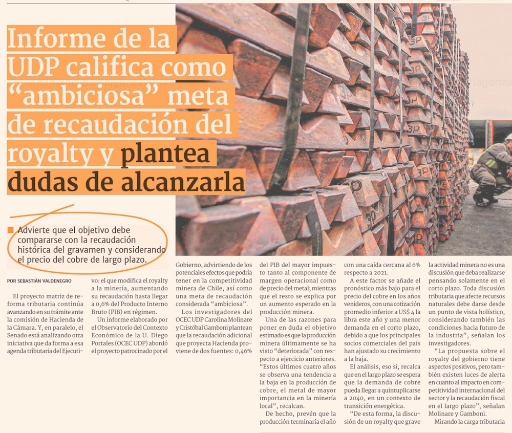 Experto analiza las nuevas indicaciones que presentó el Gobierno para el proyecto Royalty minero - (emol)