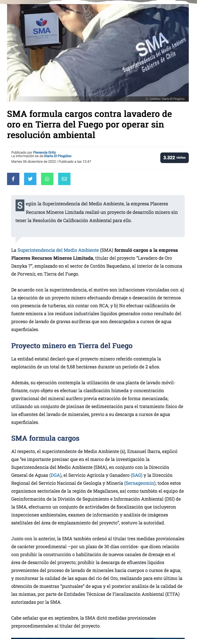 Superintendencia formula cargos a proyecto minero en el cordón Baquedano - (La Prensa Austral)