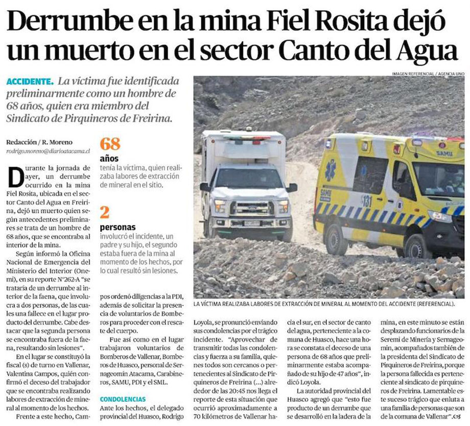 Derrumbe deja un minero muerto en faena de Atacama - (biobiochile online)