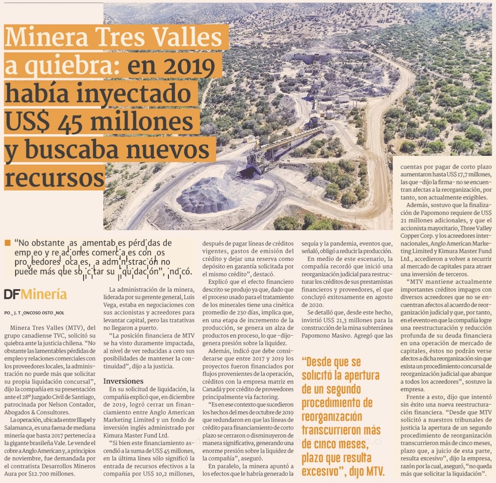 Minera presenta solicitud de liquidación - (El Mercurio de Santiago)