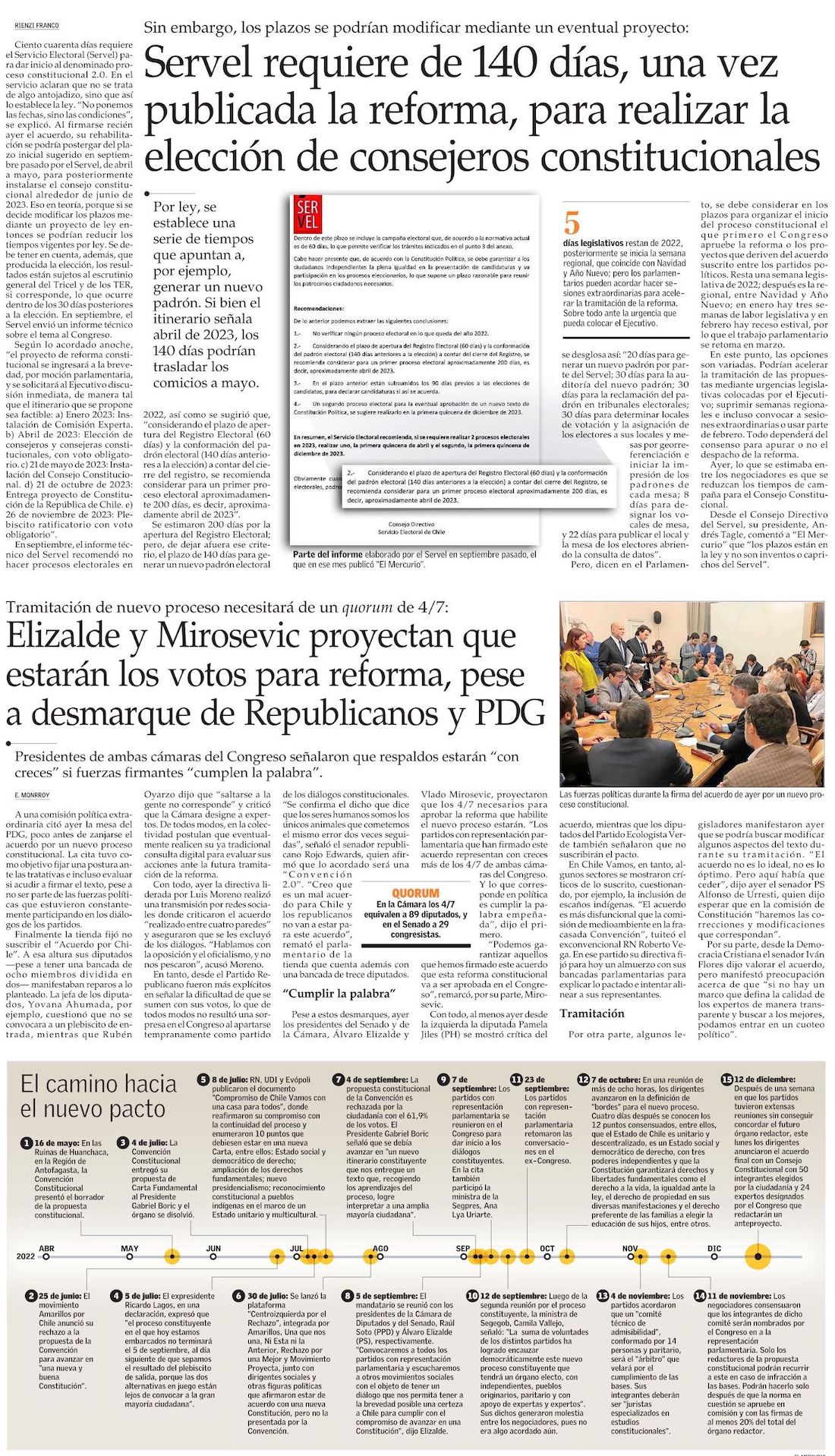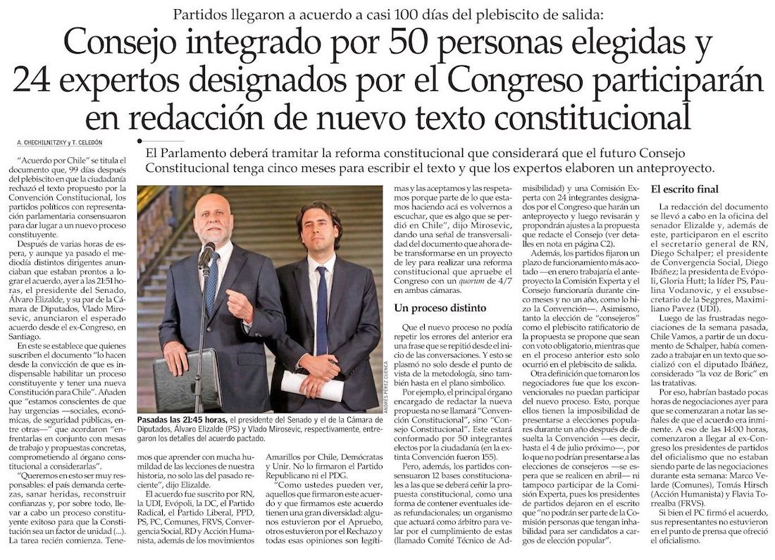 Un Consejo Constitucional de 50 escaños y 24 expertos: partidos sellan nuevo acuerdo luego de tres meses de negociaciones - (La Tercera)