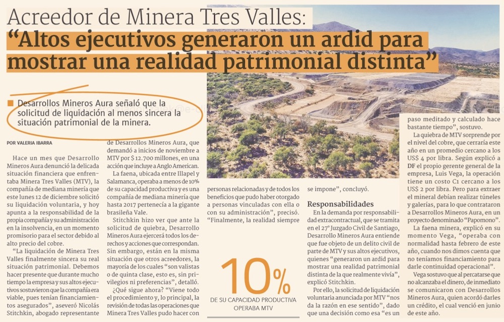 Sequía, pandemia y falta de capital: las causas de la quiebra de Minera Tres Valles - (El Día)