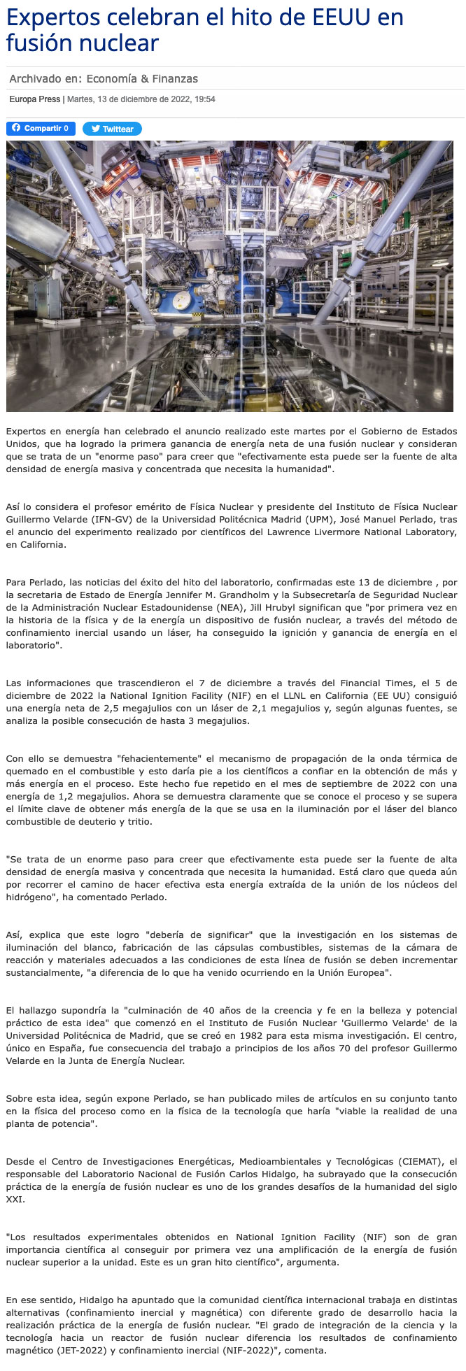 Científicos logran avance trascendental para usar la fusión nuclear como energía limpia - (El Mercurio de Santiago)