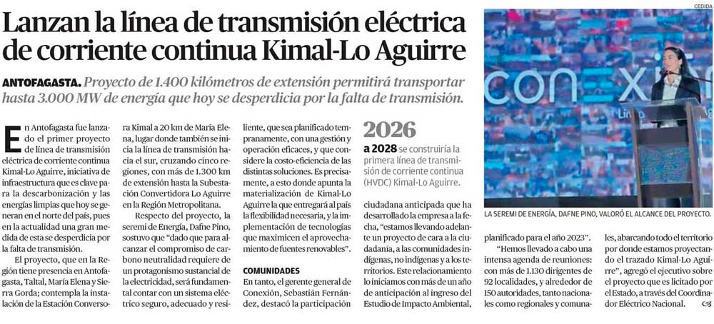 En marcha proyecto de transmisión Kimal-Lo Aguirre que parte en la Región de Antofagasta - (norteminero online)