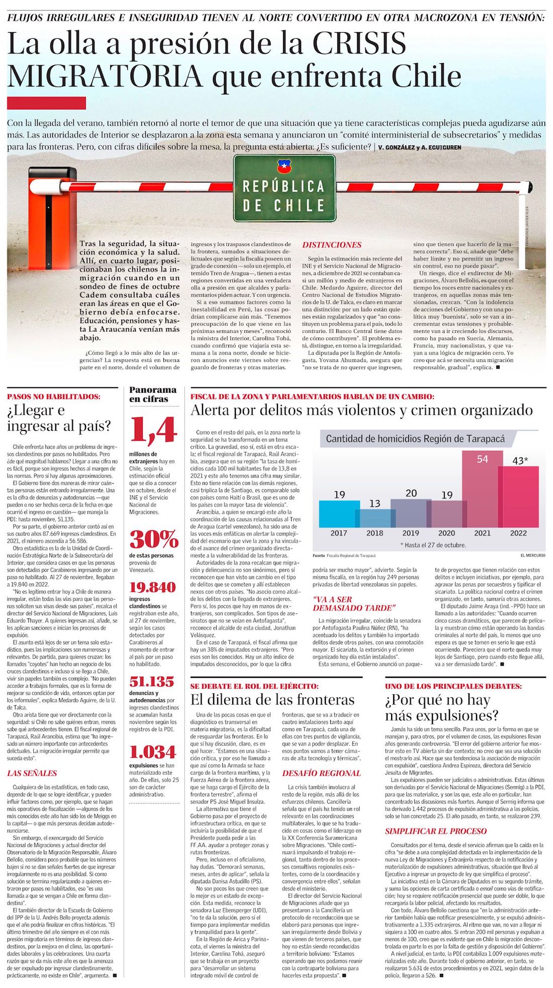 Crisis migratoria en la frontera norte obliga a reactivar las propuestas legislativas para la seguridad - (El Mercurio de Santiago)