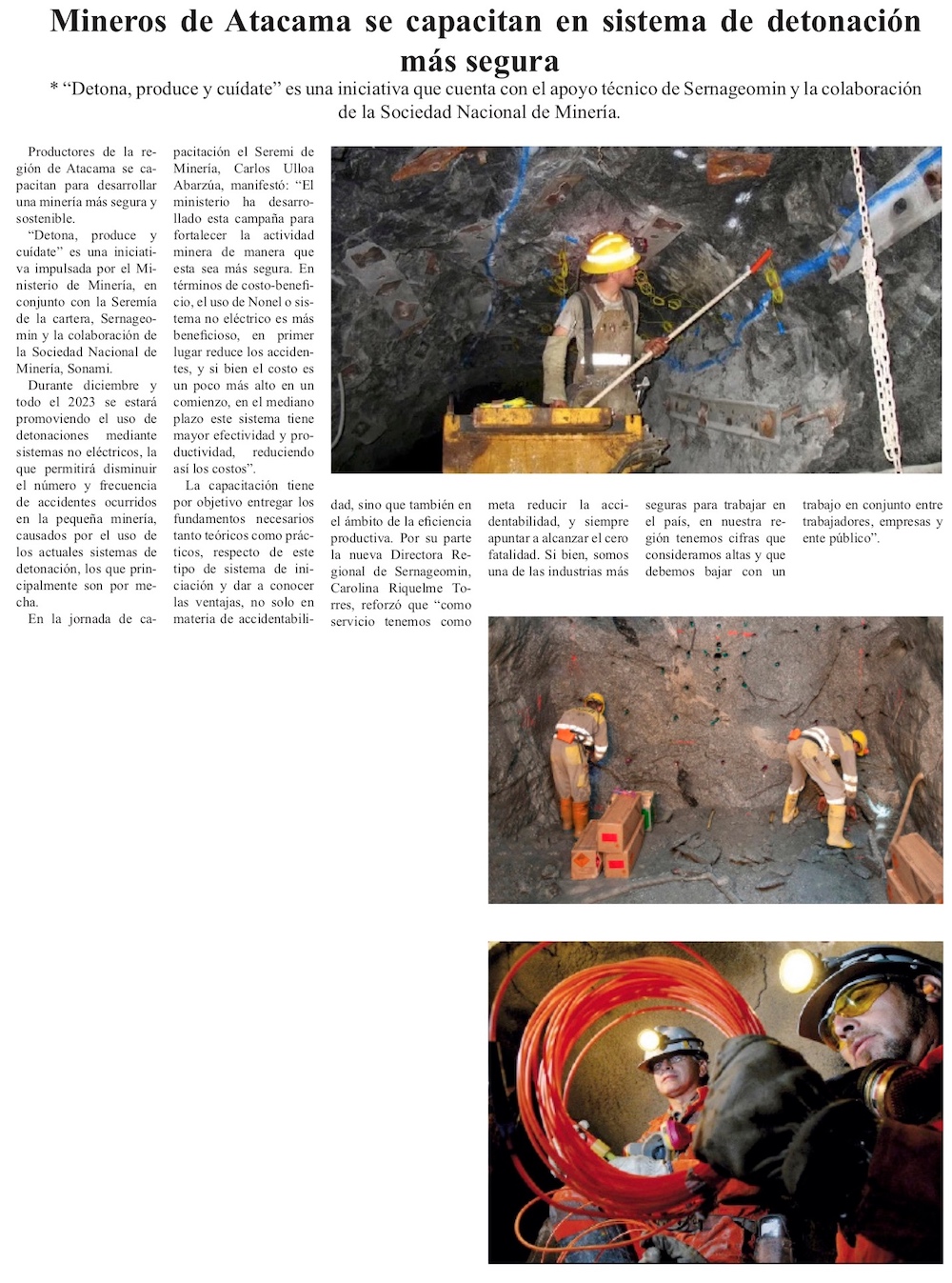 Mineros de Atacama se capacitan en sistema de detonación más segura - (El Diario de Atacama)