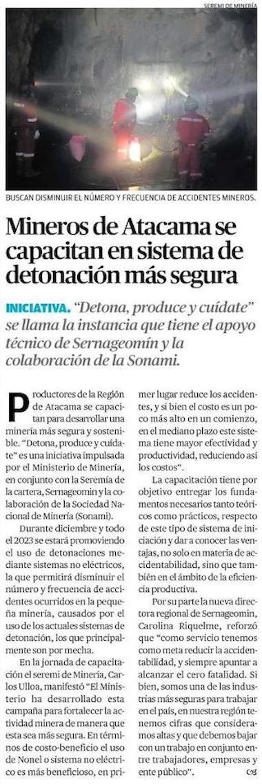 Mineros de Atacama se capacitan en sistema de detonación más segura - (El Chañarcillo)