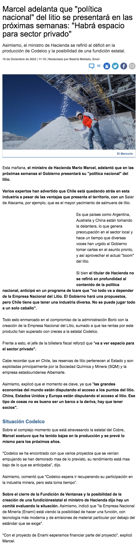 emol - Lunes, 19 de Diciembre de 2022