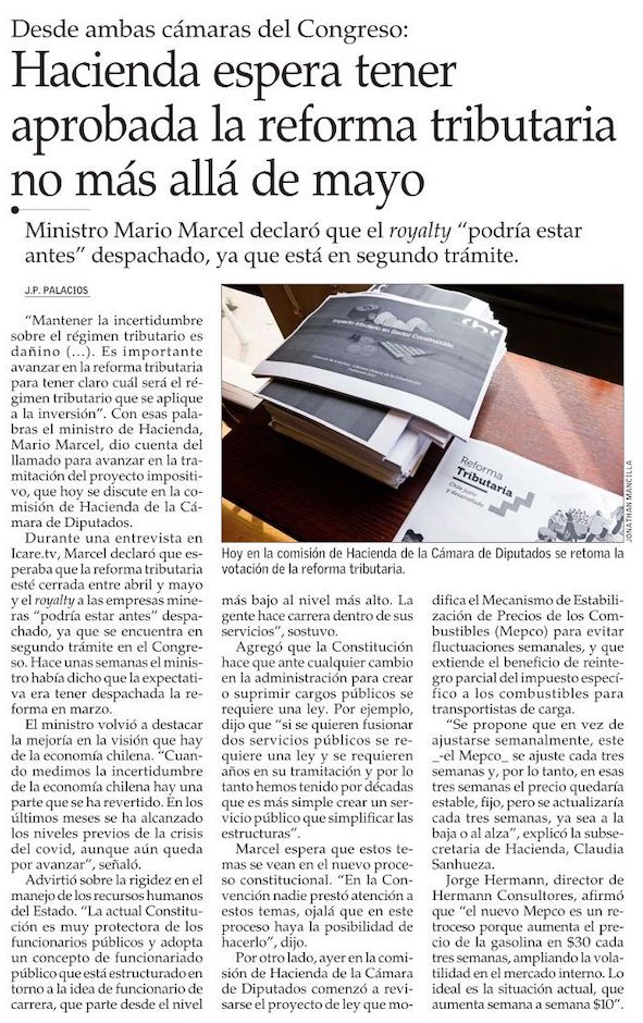 Marcel prevé que la reforma tributaria sea aprobada a más tardar en mayo del próximo año - (Pulso)