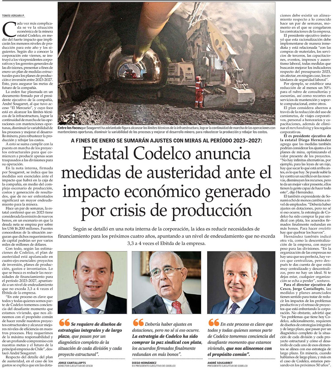André Sougarret toma medidas en Codelco ante crisis en minera estatal - (DF Online)
