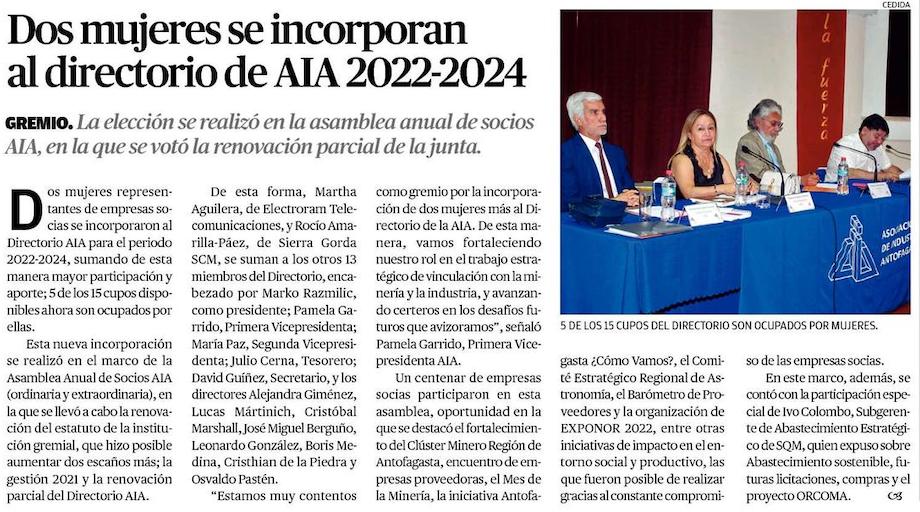 Dos mujeres se suman al Directorio AIA 2022-2024, accionando mayor participación femenina - (mch.cl)