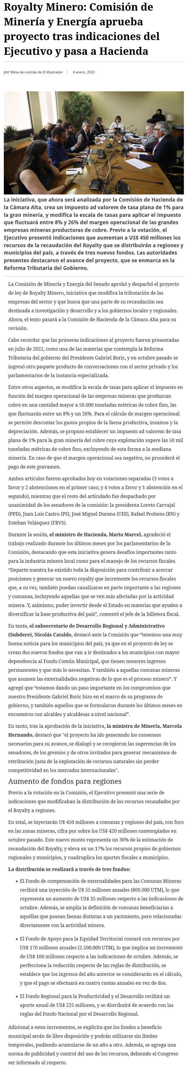 Comisión de Minería del Senado aprueba royalty minero - (Diario Financiero)