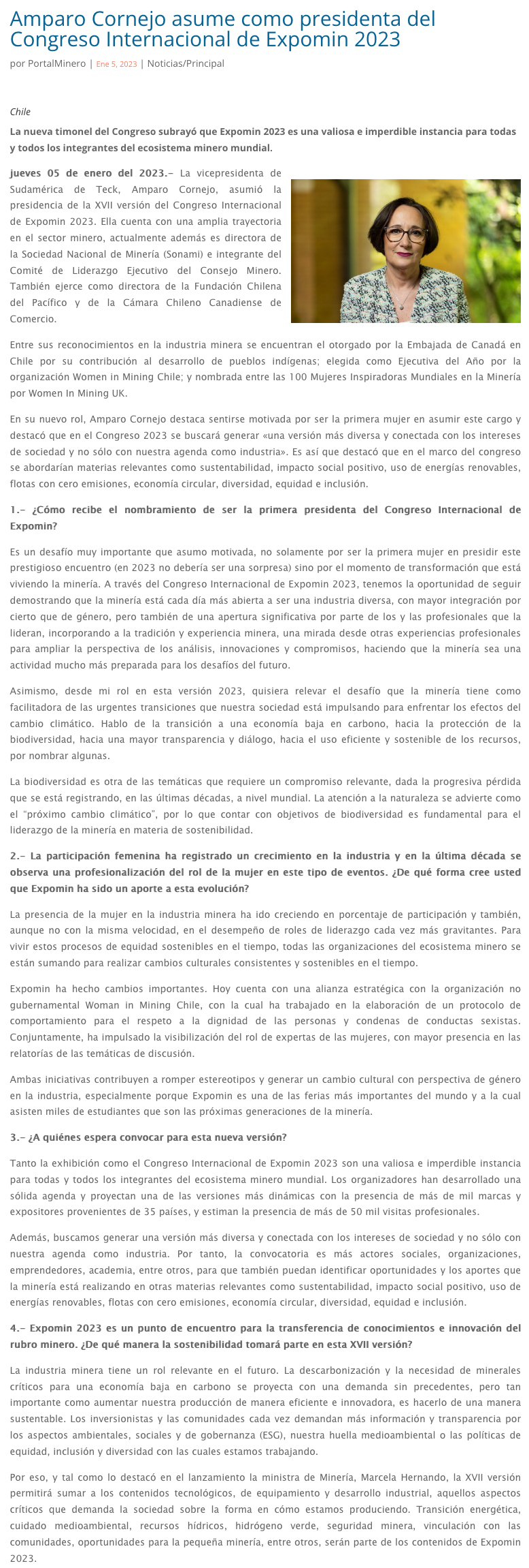 Amparo Cornejo asume como presidenta del Congreso Internacional de Expomin 2023 - (Nostálgica Online)