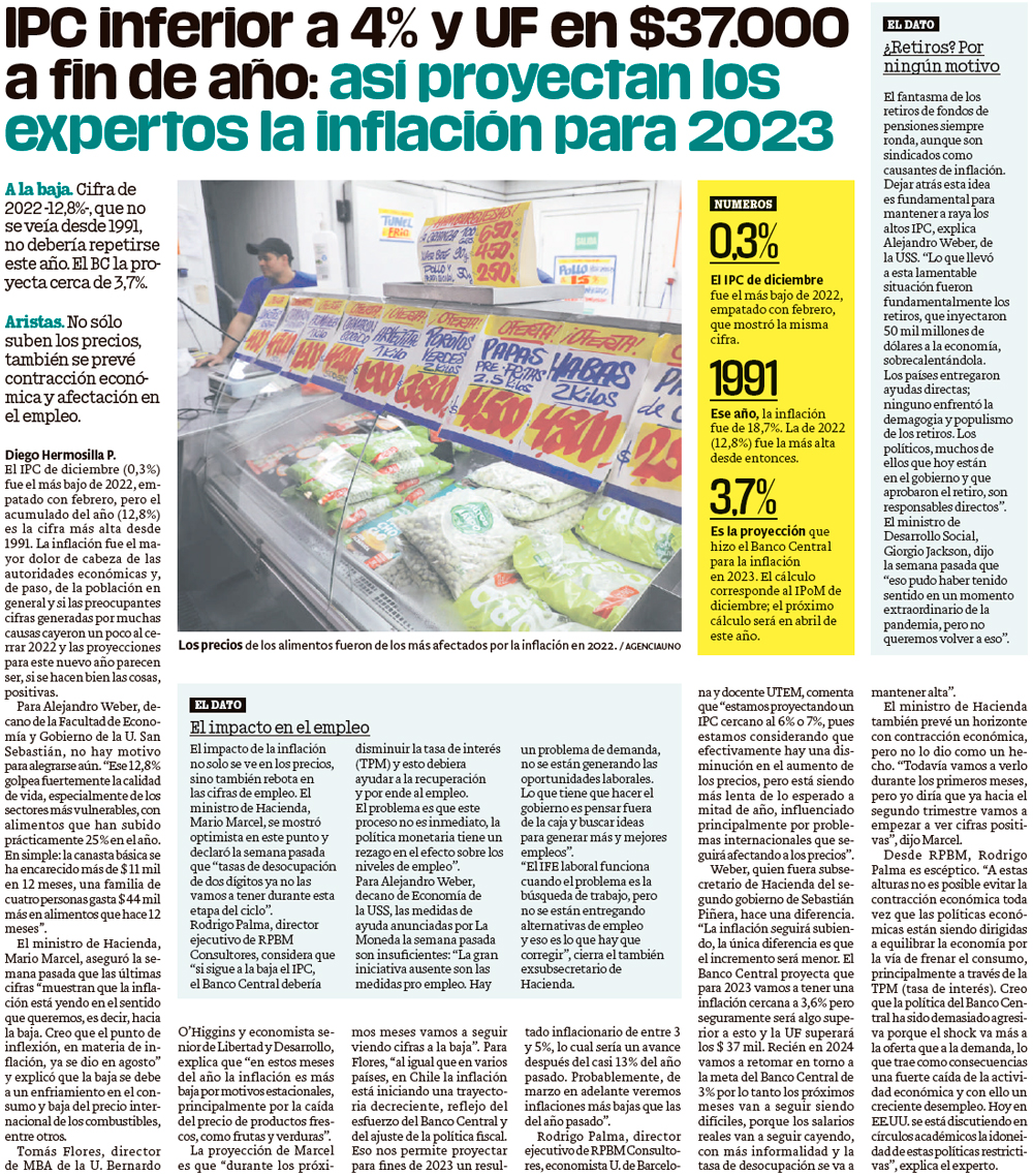 Inflación llega a 12,8% en 2022 y analistas delinean retos para contener las alzas este año - (El Mercurio de Santiago)