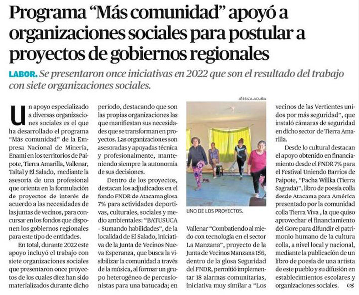 Programa "Más comunidad" de Enami apoyó a organizaciones sociales para postular a proyectos de gobiernos regionales - (tierramarillano.cl)