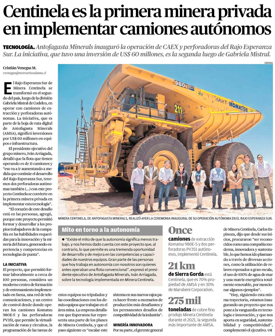 Minera Centinela inauguró el primer rajo de Antofagasta Minerals que opera con camiones y perforadoras autónomas - (diarioantofagasta)