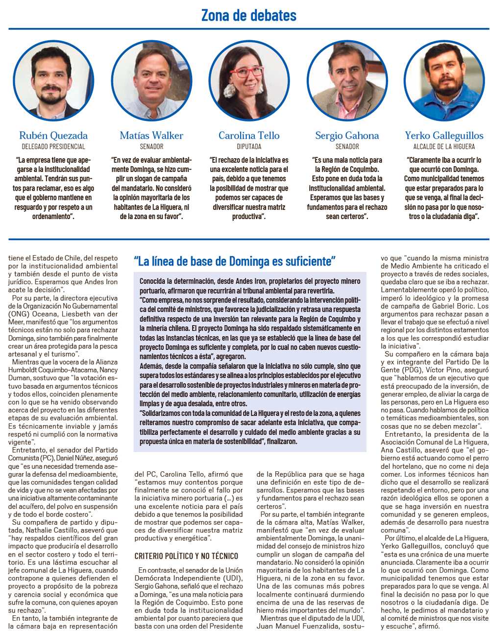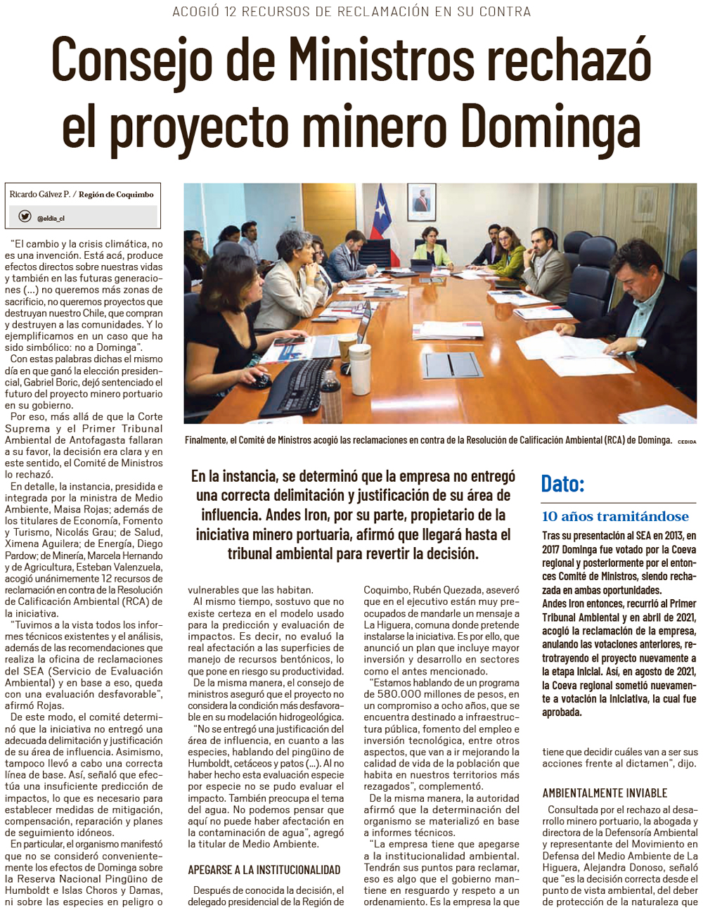 Comité de Ministros rechaza otra vez Dominga y Andes Iron defenderá en Tribunal Ambiental méritos técnicos del proyecto - (Diario Financiero)