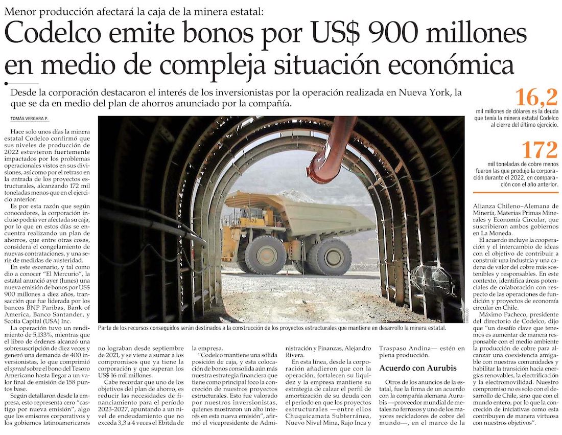 Codelco emite bonos por US$ 900 millones en el mercado internacional de deuda - (bloomberglinea.com)