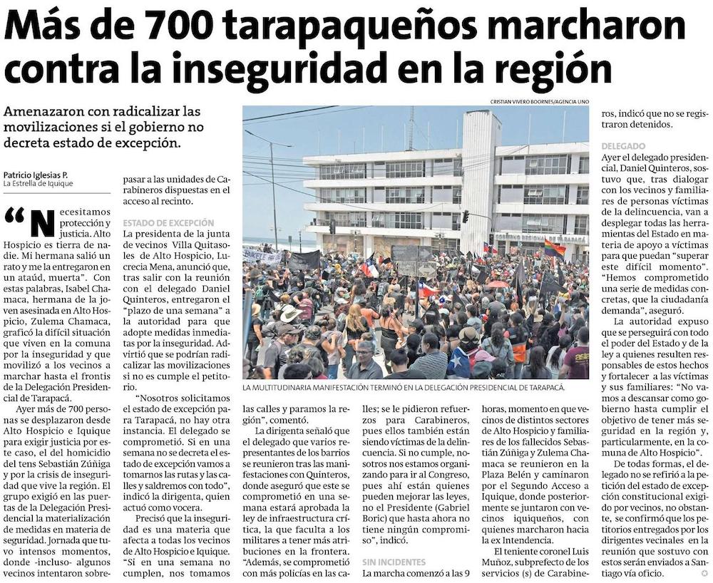 300 personas marcharon en Alto Hospicio e Iquique por crisis de seguridad: van 11 homicidios en 2023 - (biobiochile online)