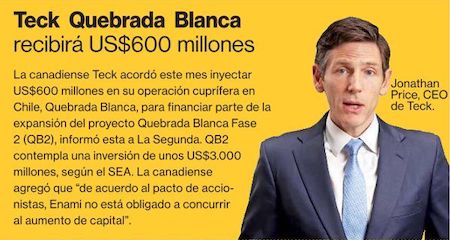 Teck podría producir hasta 180 mil toneladas de cobre este año - (El Mercurio de Santiago)