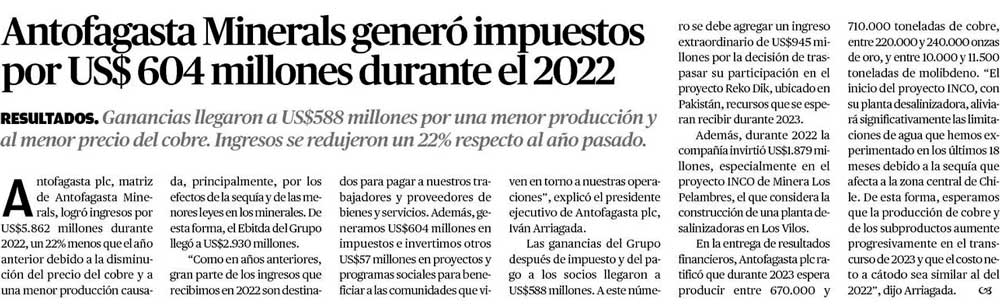 Minera del grupo Luksic reporta caída en sus ganancias de 2022 y menor dividendo para los accionistas - (Pulso)