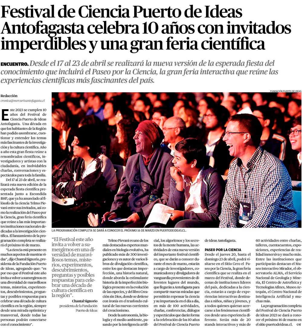 El Festival de Ciencia Puerto de Ideas Antofagasta celebra sus 10 años con más de 100 actividades - (El Mercurio de Santiago)