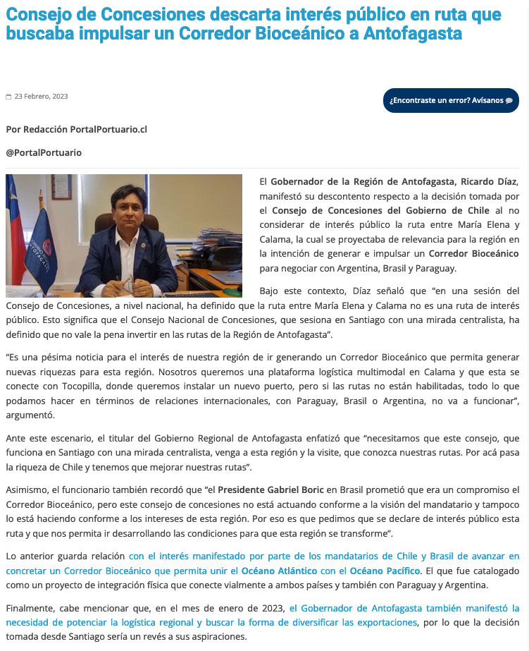 MOP no recomienda proyecto de ampliación de ruta B-24 y condiciona Corredor Bioceánico - (El Mercurio de Antofagasta)
