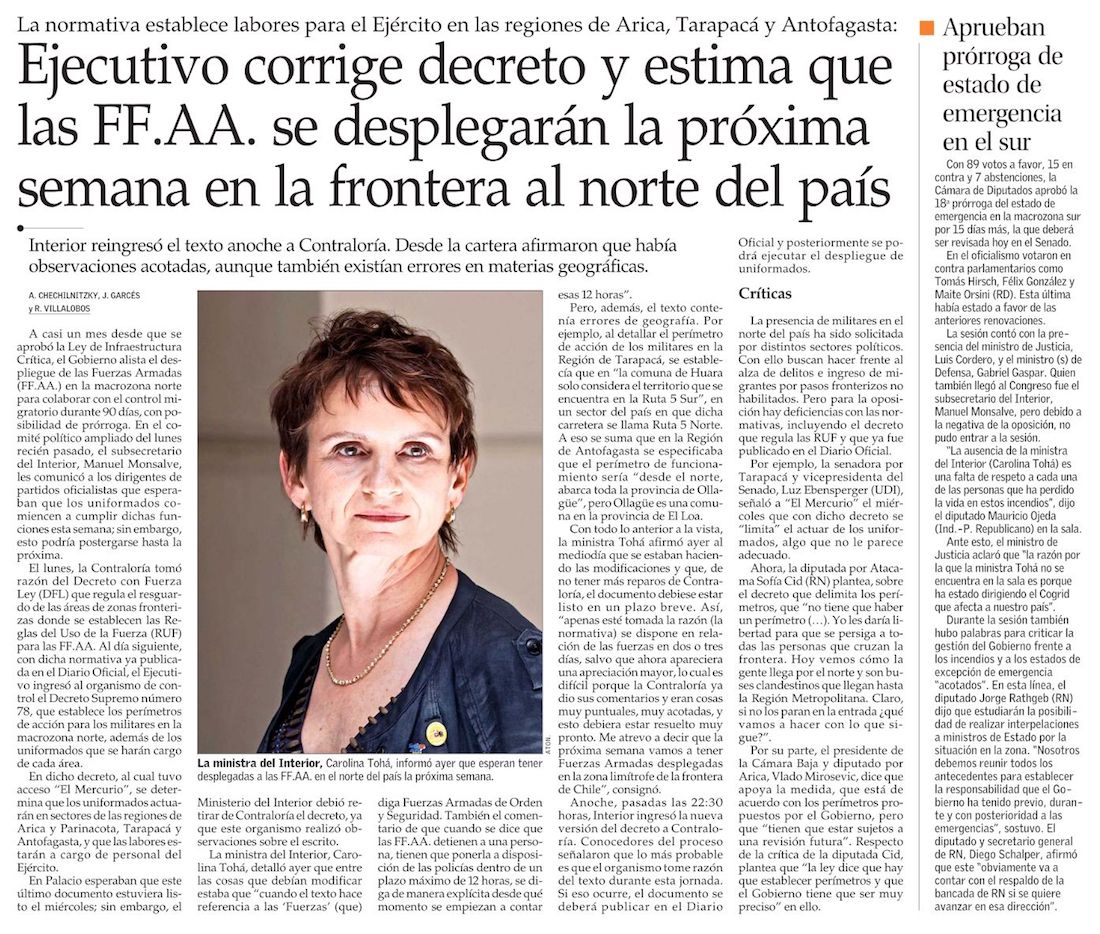 Gobierno retira decreto para desplegar a las FF.AA. en la frontera por errores - (Estrella de Iquique)