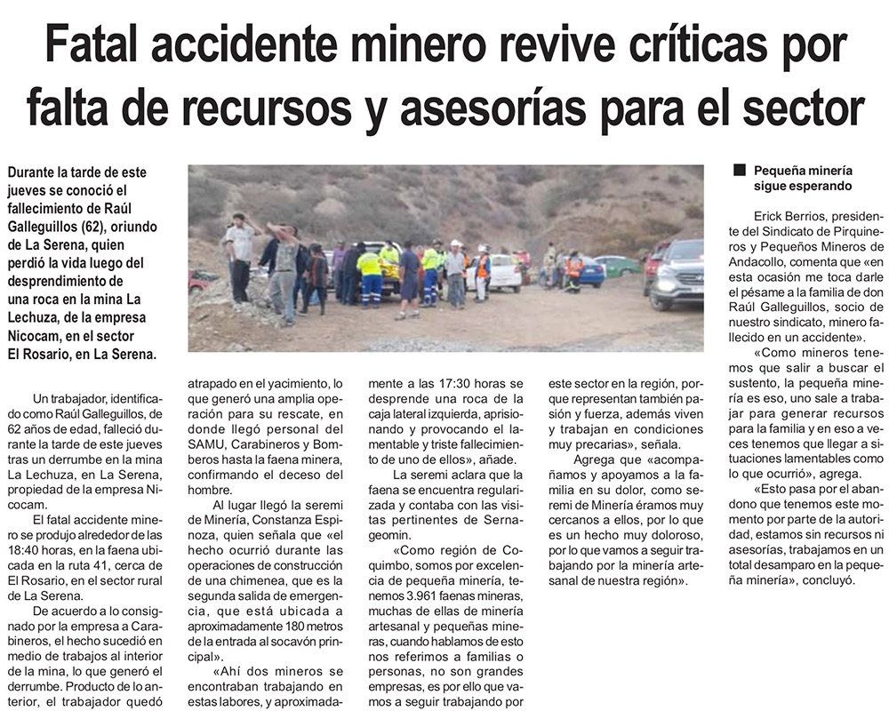 Derrumbe en mina La Lechuza deja un trabajador fallecido en La Serena - (biobiochile online)