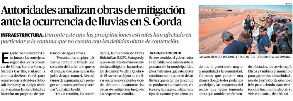Gobernador recorre terrenos donde se analiza el levantamiento de obras de mitigación para la localidad de Sierra Gorda ante la ocurrencia de lluvias - (diarioangamos)