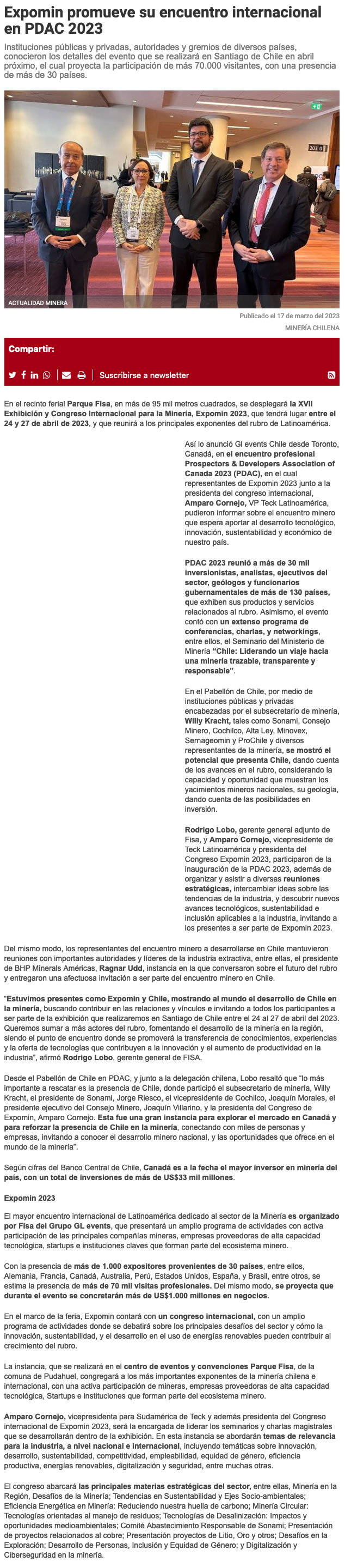 Expomin realiza promoción internacional de su feria minera más grande de Latinoamerica - (revistacrisol.cl)