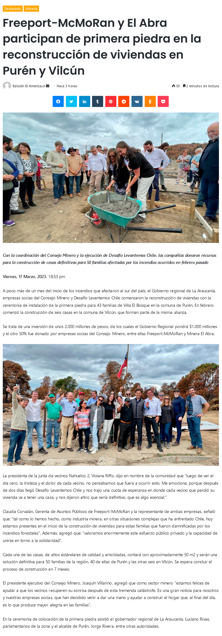 Anglo American, en alianza con otras empresas y organizaciones, ponen en marcha reconstrucción de viviendas en Purén y Vilcún - (portalminero)