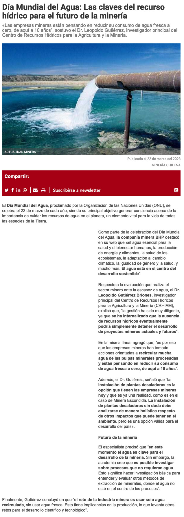 Día del Agua: Anglo American se compromete ante la ONU a no usar agua fresca en Los Bronces a 2030 - (biobiochile online)