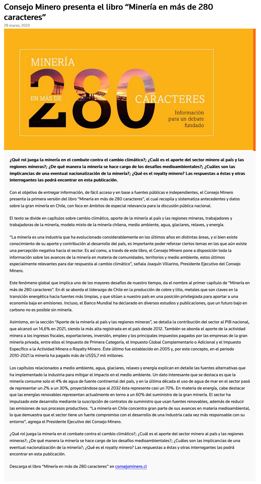 Consejo Minero presenta el libro “Minería en más de 280 caracteres” - (mch.cl)