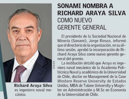 Richard Araya asume como nuevo gerente general de Sonami - (El Mercurio de Calama)