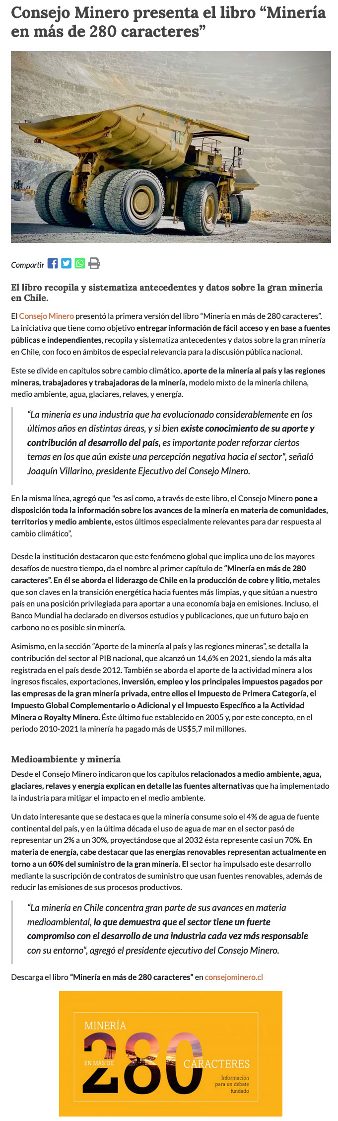 Consejo Minero presenta el libro “Minería en más de 280 caracteres” - (nuevaminería online)