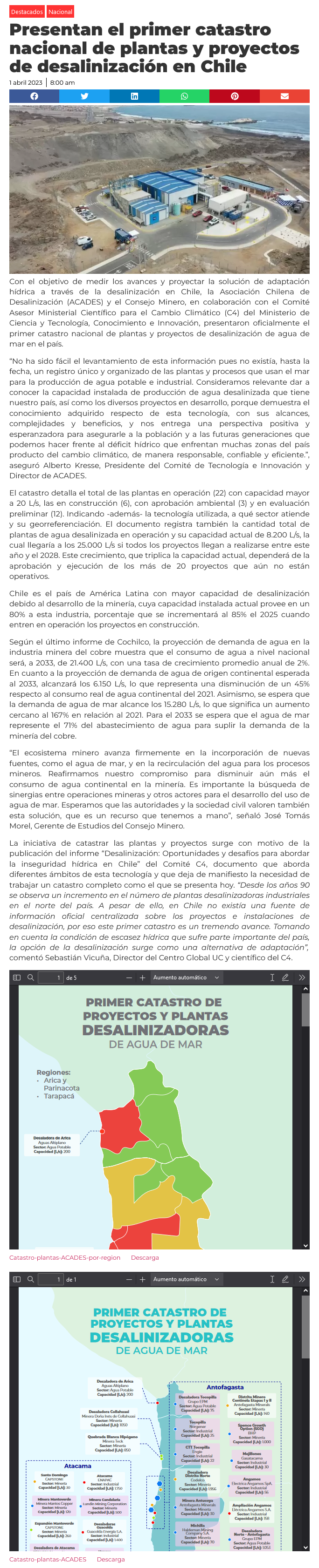Presentan el primer catastro nacional de plantas y proyectos de desalinización en Chile - (infogate.cl)