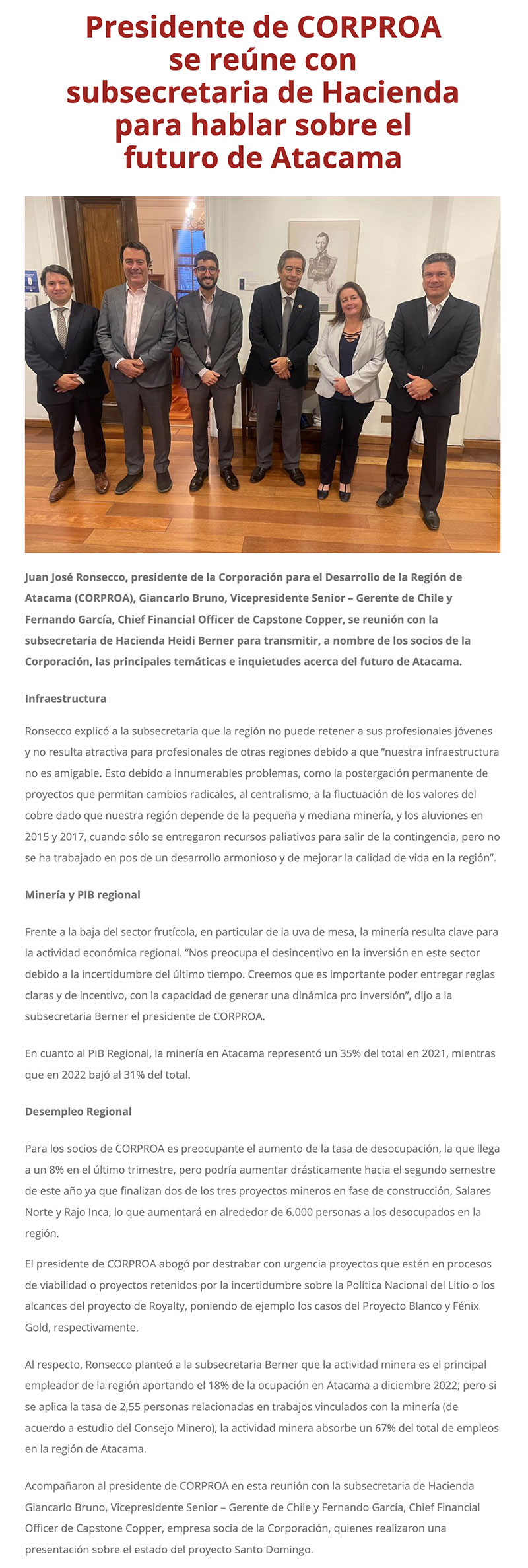 Presidente de Corproa se reúne con subsecretaria de Hacienda para hablar sobre el futuro de Atacama - (Nostálgica Online)