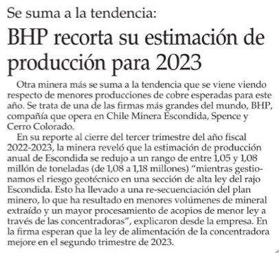 BHP reducirá producción de Escondida el 2023 - (Pulso)